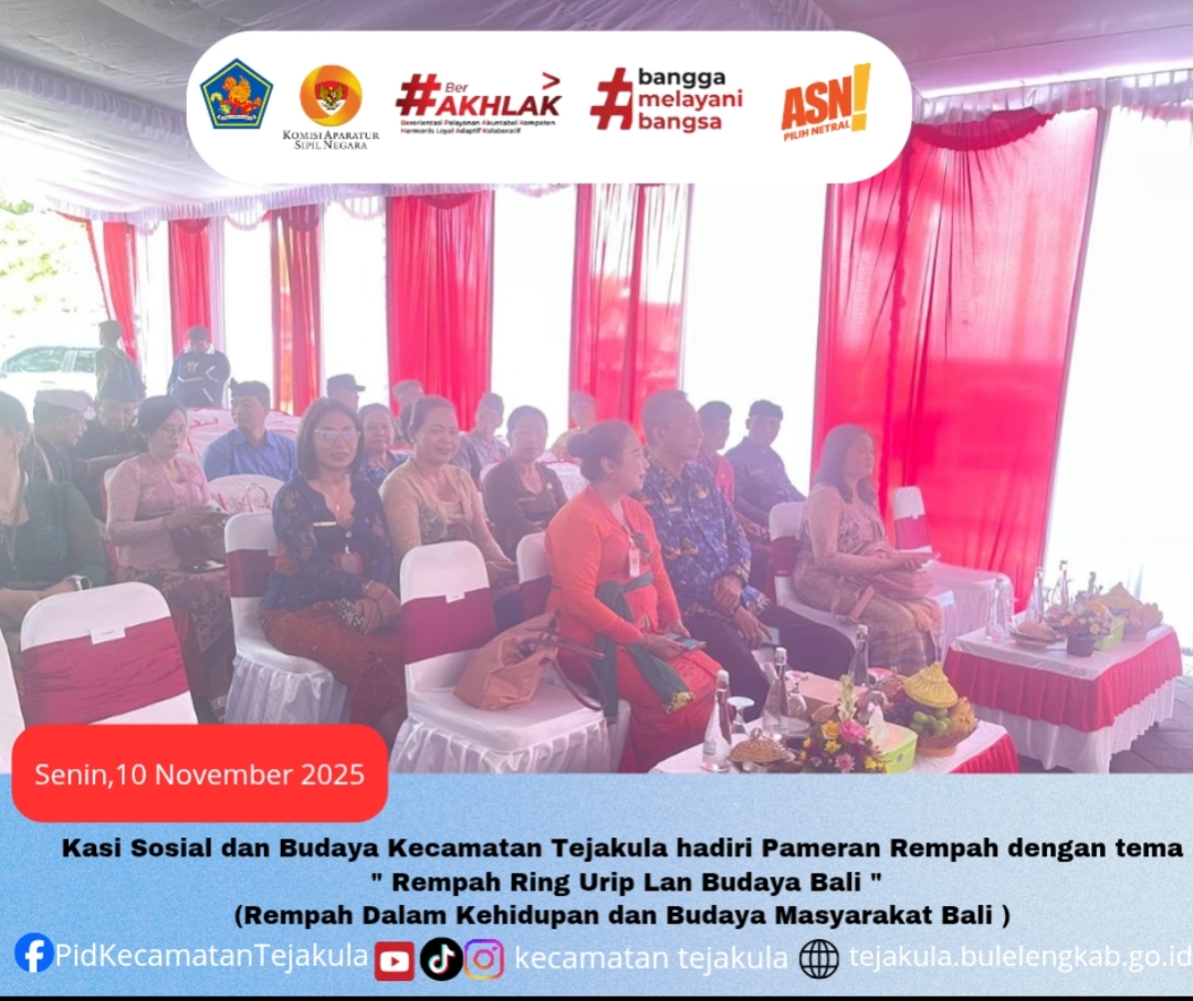 Singaraja, Senin, 10 November 2025, Kasi Sosial dan Budaya Kecamatan Tejakula menghadiri undangan Pameran Rempah yang diselenggarakan oleh Dinas Kebudayaan Kabupaten Buleleng yang bertempat di Museum Soenda Ketjil ( ex Pelabuhan Buleleng ) dengan tema " Rempah Ring Urip Lan Budaya Bali " (Rempah Dalam Kehidupan dan Budaya Masyarakat Bali ) dengan subtema " Suksmaning Kawigunan Rempah (Kegunaan/Khasiat Rempah ) sebagai upaya pelestarian dan pemanfaatan lontar - lontar milik Gedong Kirtya serta sebagai upaya publikasi dan memberikan informasi terkait rempah.