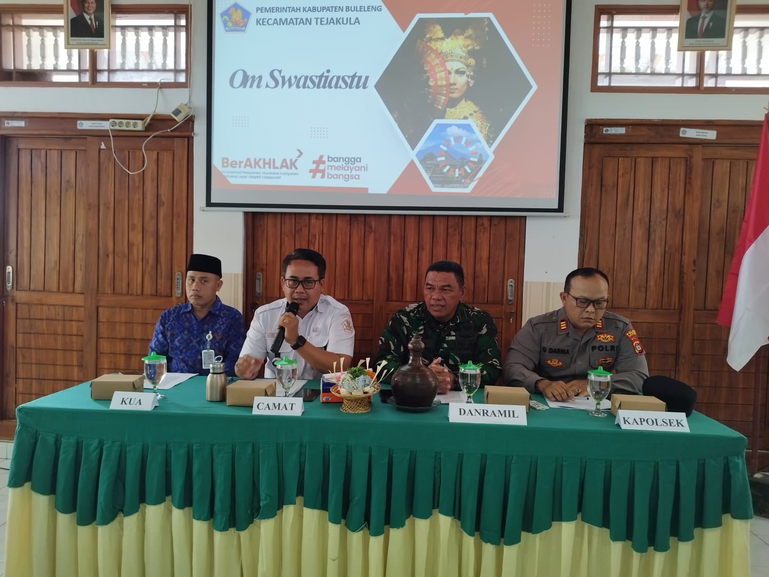 Rabu, 11 Maret 2026, telah dilaksanakan Rapat Koordinasi dalam rangka Cipta Kondisi Ketentraman dan Ketertiban menjelang perayaan Hari Raya Nyepi Tahun Baru Saka 1948 dan Hari Raya Idul Fitri 1447 Hijriah, bertempat di Ruang Rapat Kantor Camat Tejakula.