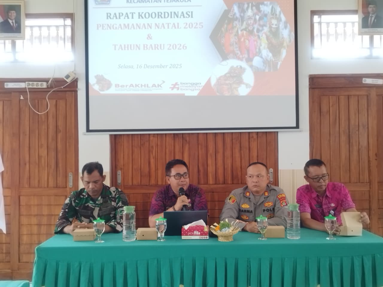 Selasa tanggal 16 Desember 2025 pukul 09.30 Wita,bertempat di Ruang Rapat Kantor Camat Tejakula,telah dilaksanakan Rapat Kordinasi dalam rangka Pengamanan Natal 2025 dan Tahun Baru 2026,yang dipimpin langsung oleh Camat Tejakula, (Kadek Agus Hartika,S.T.,M.A.P) yang diikuti sebanyak 30 orang