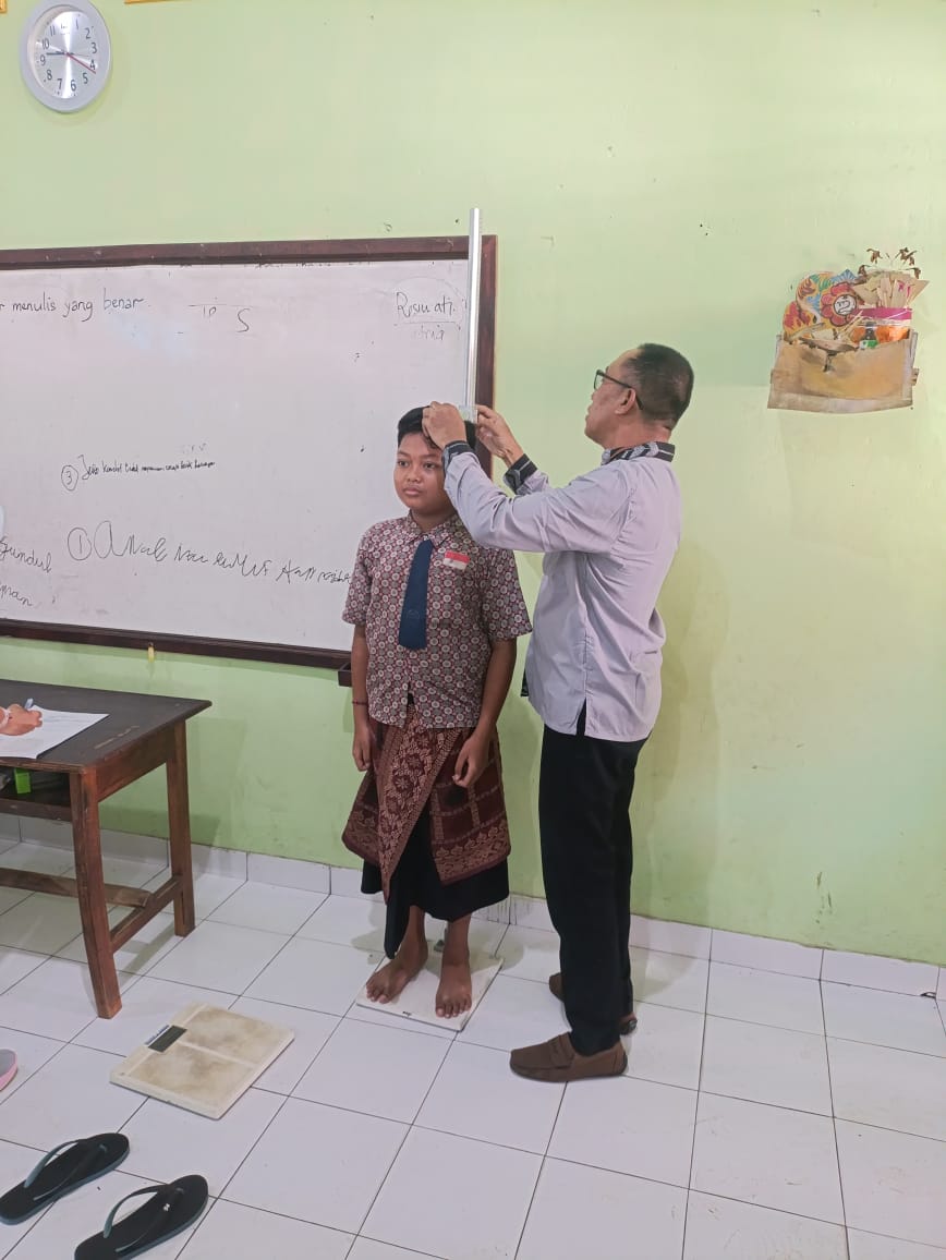 Kegiatan yang dilaksanakan meliputi pengukuran tinggi badan, pemeriksaan mata, penimbangan berat badan, dan pemeriksaan telinga.