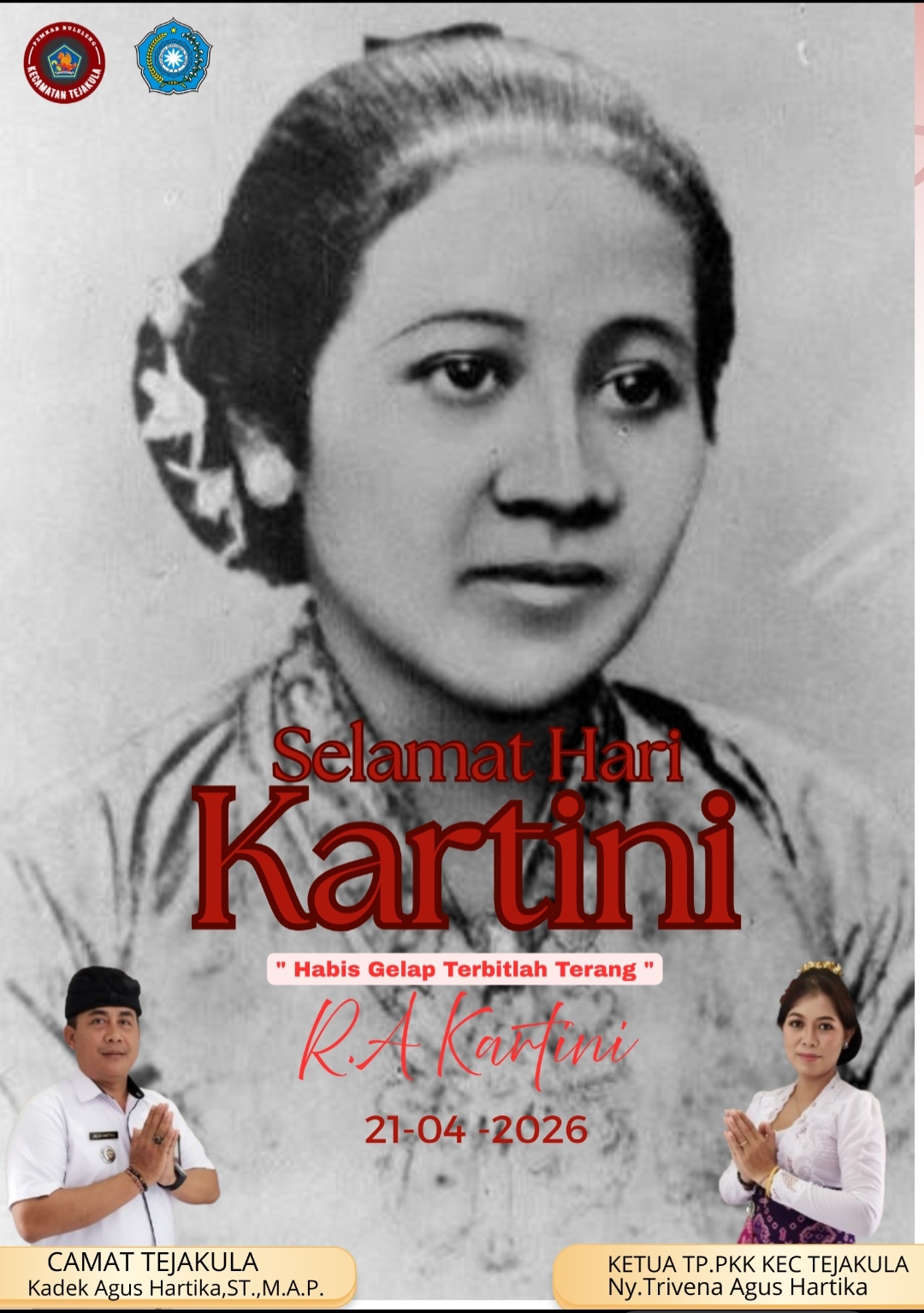 Selasa, 21 April 2026, Camat Tejakula Kadek Agus Hartika, ST., M.A.P., dan Ketua TP PKK Kecamatan Tejakula Ny. Trivena Agus Hartika dan Jajaran Staf mengucapkan: