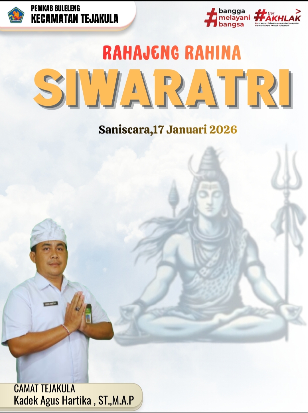 Camat Tejakula Kadek Agus Hartika, ST.,M.A.P., bersama seluruh staf mengucapkan Rahajeng Rahina Siwaratri