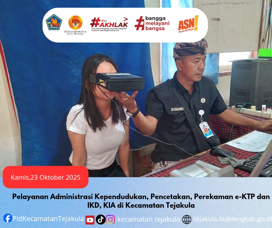 Pelayanan Administrasi Kependudukan, Pencetakan, Perekaman e-KTP dan IKD, KIA di Kecamatan Tejakula, Kamis 23 Oktober 2025.