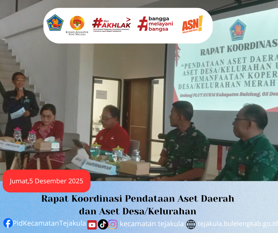 Singaraja, Kasi Pembangunan Kecamatan Tejakula menghadiri undangan rapat koordinasi dlm rangka pendataan Aset Daerah dan Aset Desa/ Kelurahan yang ada di Kabupaten Buleleng, bertempat di Gedung PLUT KUMKM Kabupaten,(5/12).