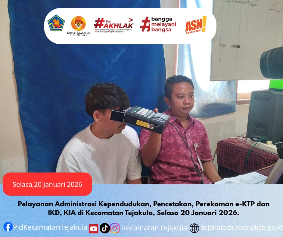 Pelayanan Administrasi Kependudukan, Pencetakan, Perekaman e-KTP dan IKD, KIA di Kecamatan Tejakula, Selasa 20 Januari 2026.