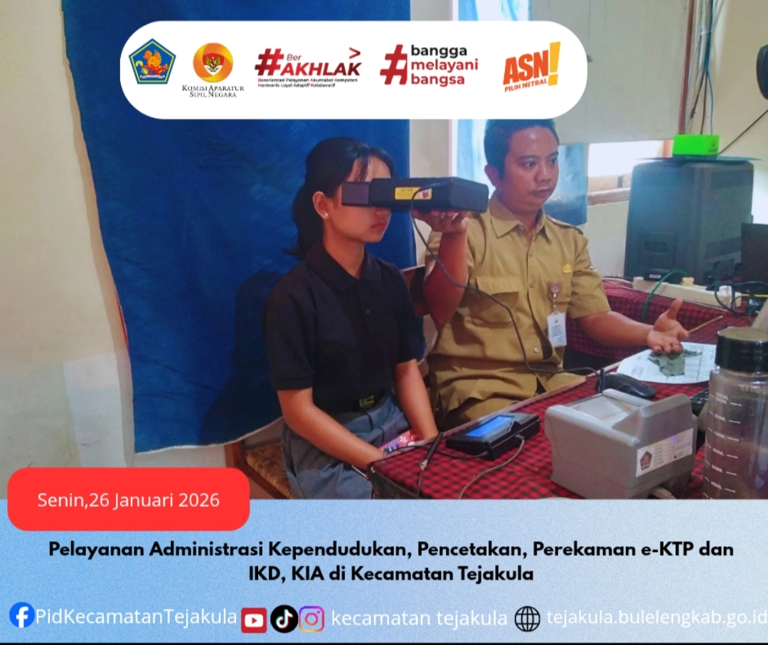 Pelayanan Administrasi Kependudukan, Pencetakan, Perekaman e-KTP dan IKD, KIA di Kecamatan Tejakula, Senin 26 Januari 2026.