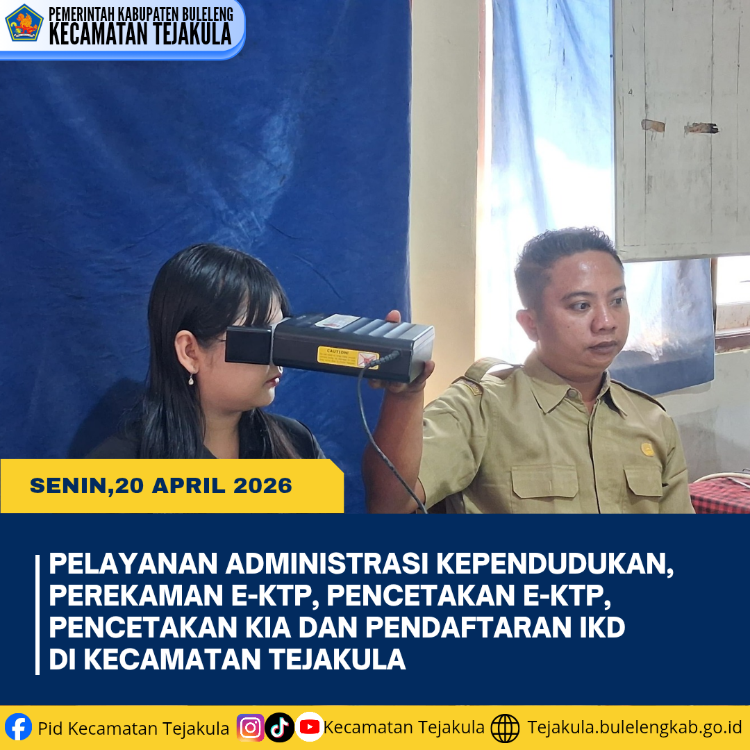 Pelayanan Administrasi Kependudukan, Perekaman E-KTP, Pencetakan E-KTP, Pencetakan KIA dan Pendaftaran IKD di Kecamatan Tejakula, Senin 20 April 2026.
