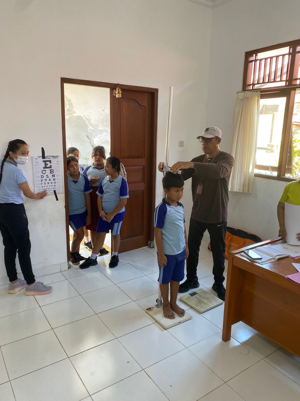 Jumat, 10 April 2026, Staf Seksi Sosial dan Budaya mendampingi pelaksanaan kegiatan Skirining kesehatan yang dilaksanakan oleh Tim Puskemas Tejakula 1 di lingkungan sekolah yang bertempat di SD Negeri 3 Tejakula. Kegiatan yang dilaksanakan meliputi: pengukuran tinggi badan, pemeriksaan mata, penimbangan berat badan, dan pemeriksaan telinga.