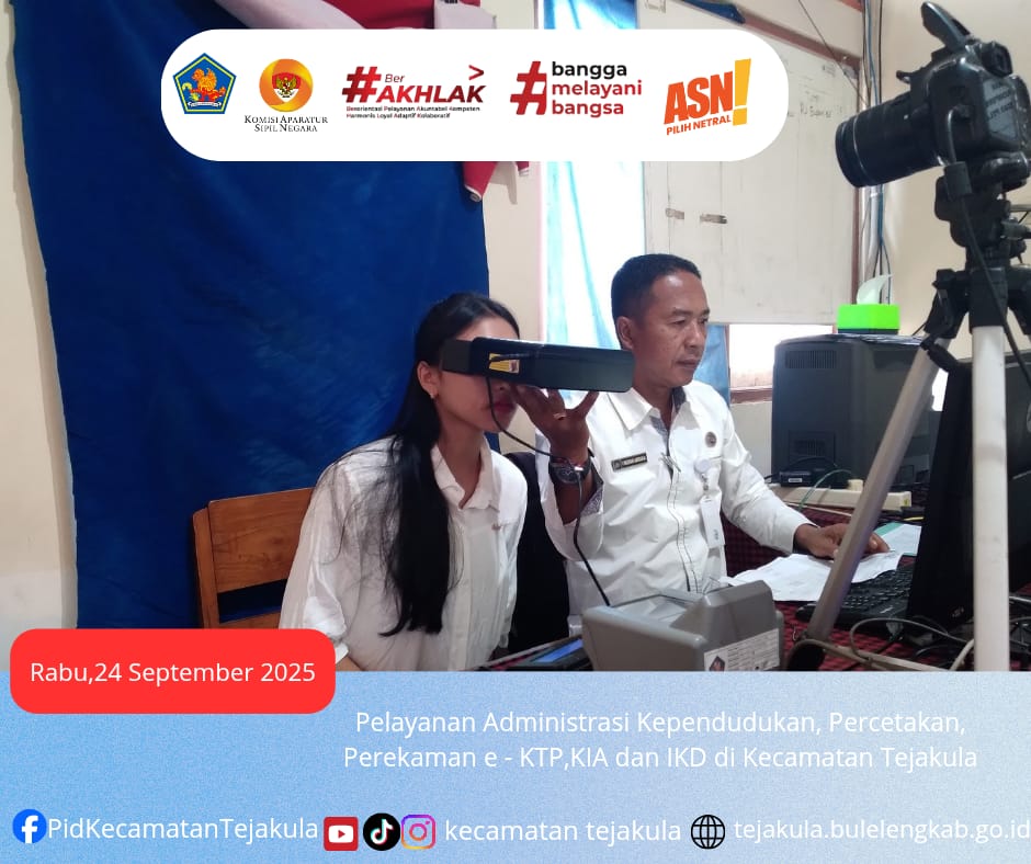 Pelayanan Administrasi Kependudukan, Pencetakan, Perekaman e-KTP dan IKD, KIA di Kecamatan Tejakula, Rabu 24 September 2025.