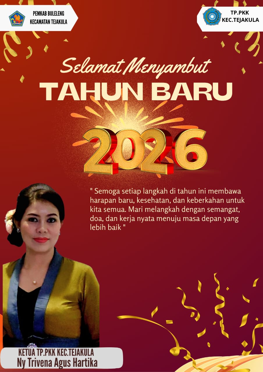Ketua TP. PKK Kecamatan Tejakula Ny. Trivena Agus Hartika dan seluruh anggota mengucapkan Selamat Tahun Baru 2026.
