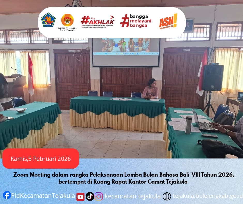 Tejakula - , Kamis 5 Pebruari 2026, Zoom Meeting dalam rangka Pelaksanaan Lomba Bulan bahasa bali VIII tahun 2026, bertempat di Ruang Rapat Kantor Camat Tejakula.