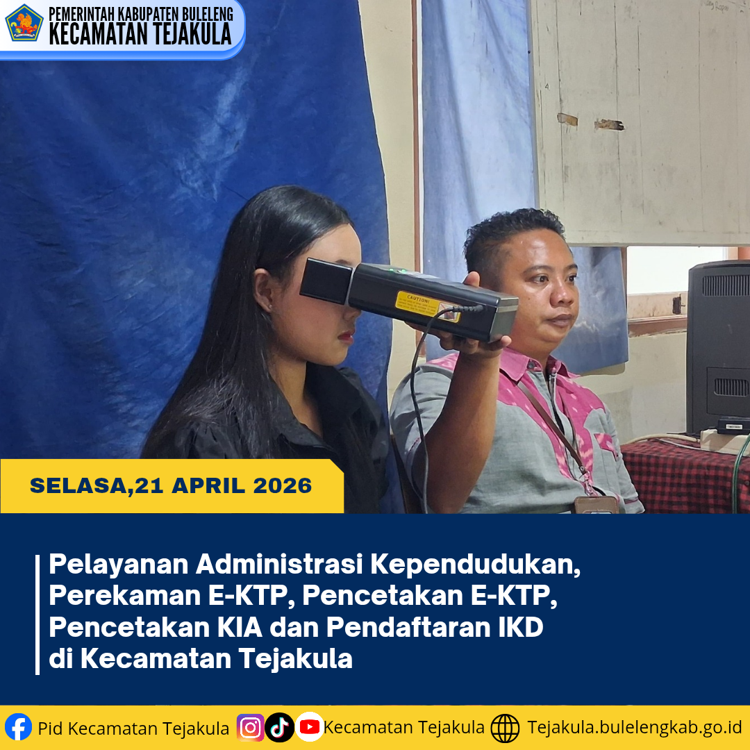 Pelayanan Administrasi Kependudukan, Perekaman E-KTP, Pencetakan E-KTP, Pencetakan KIA dan Pendaftaran IKD di Kecamatan Tejakula, Selasa 21 April 2026.