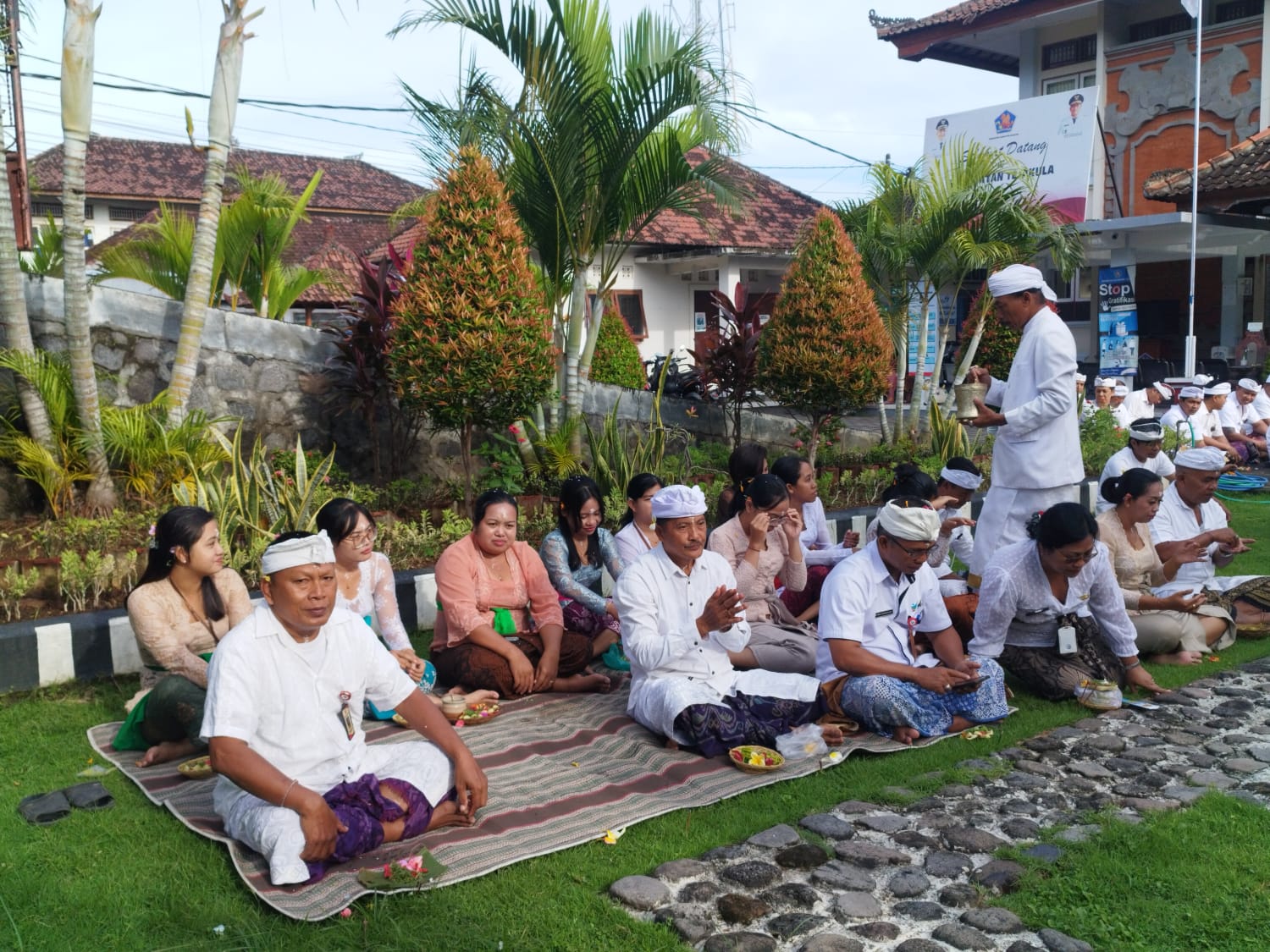 Bertepatan dengan Rahina Purnama Sasih Kawulu pegawai Kantor Camat Tejakula melaksanakan persembahyangan bersama di Padmasana Kantor Camat Tejakula pada hari Senin (2/1/2026).