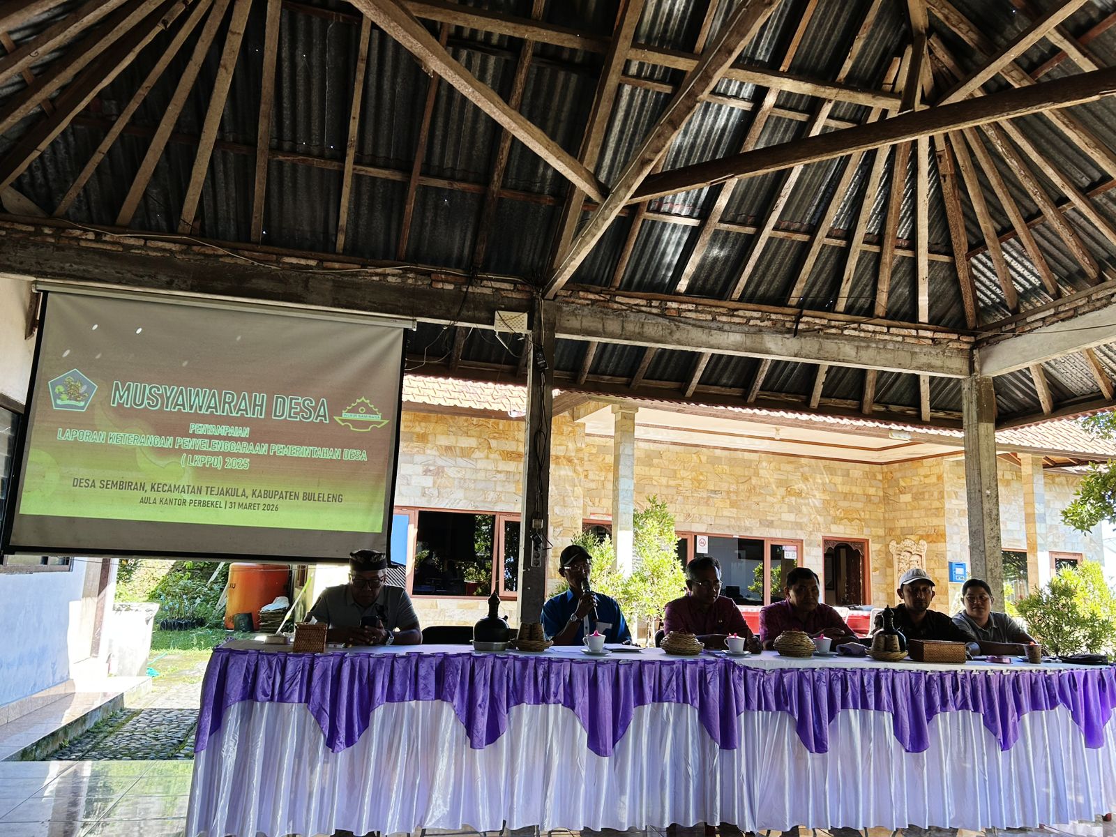 Selasa,31 Maret 2026, Bertempat di Aula pertemuan Desa Sembiran, mewakili Camat Tejakula, Kasi Pemerintahan beserta staf menghadiri kegiatan musyawarah desa dalam rangka penyampaian Laporan Keterangan Penyelenggaraan Pemerintahan Desa Tahun 2025, yang dihadiri oleh Perbekel Desa Sembiran, LPM, Penyarikan Desa Adat, Kader dan tokoh masyarakat lainnya.