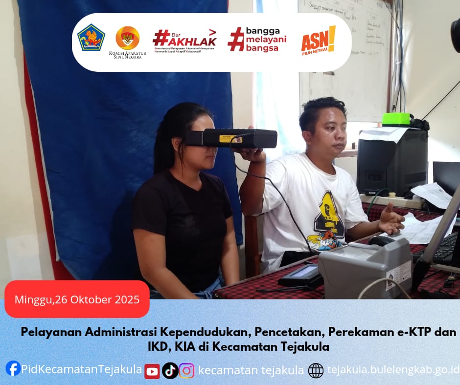 Pelayanan Administrasi Kependudukan, Pencetakan, Perekaman e-KTP dan IKD di Kecamatan Tejakula, Minggu 26 Oktober 2025.