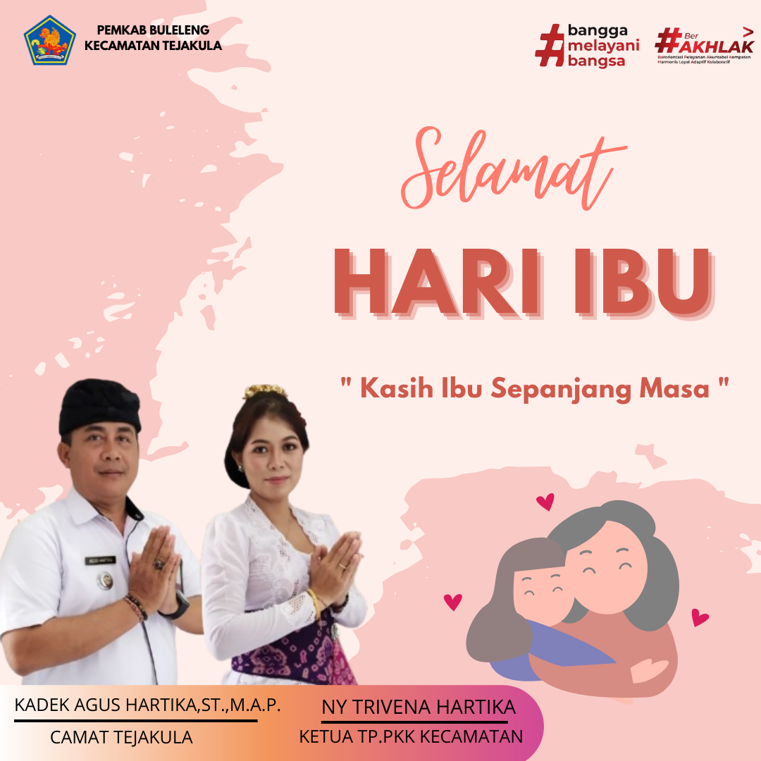 Camat Tejakula Kadek Agus Hartika, ST.,M.A.P., beserta Ketua TP. PKK Kecamatan Tejakula Ny. Trivena Hartika dan seluruh staf mengucapkan Selamat Hari Ibu 2025, Senin(22/12).