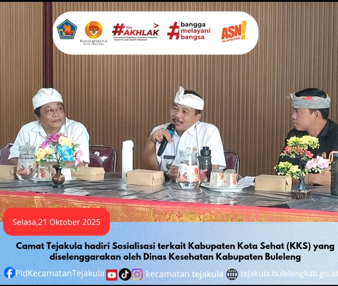 Pacung,_ Camat Tejakula I Gede Suyasa SP., menghadiri Sosialisasi terkait Kabupaten Kota Sehat (KKS) yang diselenggarakan oleh Dinas Kesehatan Kabupaten Buleleng, bertempat di Ruang Rapat Kantor Perbekel Desa Pacung , Selasa (21/10).