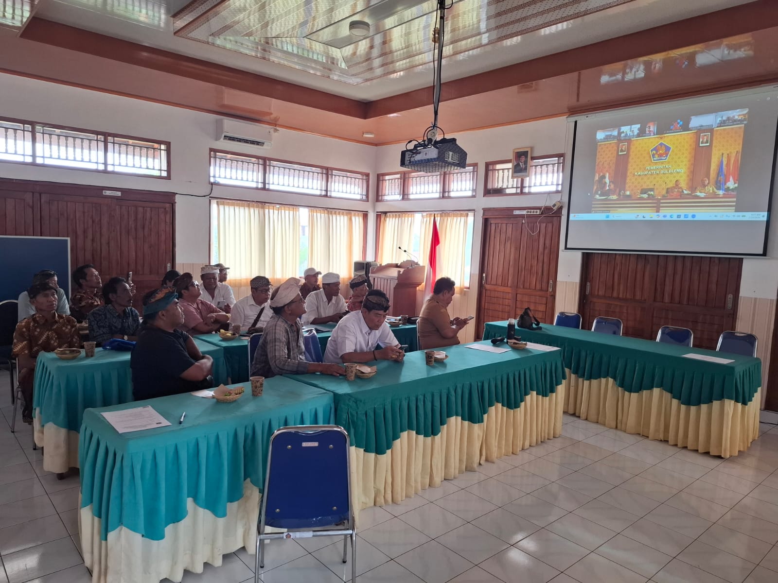 Tejakula, Senin, 23 Pebruari 2026, Camat Tejakula Kadek Agus Hartika, ST.,M.A.P., beserta Ketua MDA Kecamatan Tejakula, Majelis Subak Kecanatan Tejakula dan Bandesa Adat se-Kecamatan Tejakula, mengikuti Zoom Meeting dengan agenda Koordinasi dan Sosialisasi Mekanisme Pemberian Hibah Pemerintah Kabupaten Buleleng TA 2026, di Ruang Rapat Kantor Camat Tejakula.