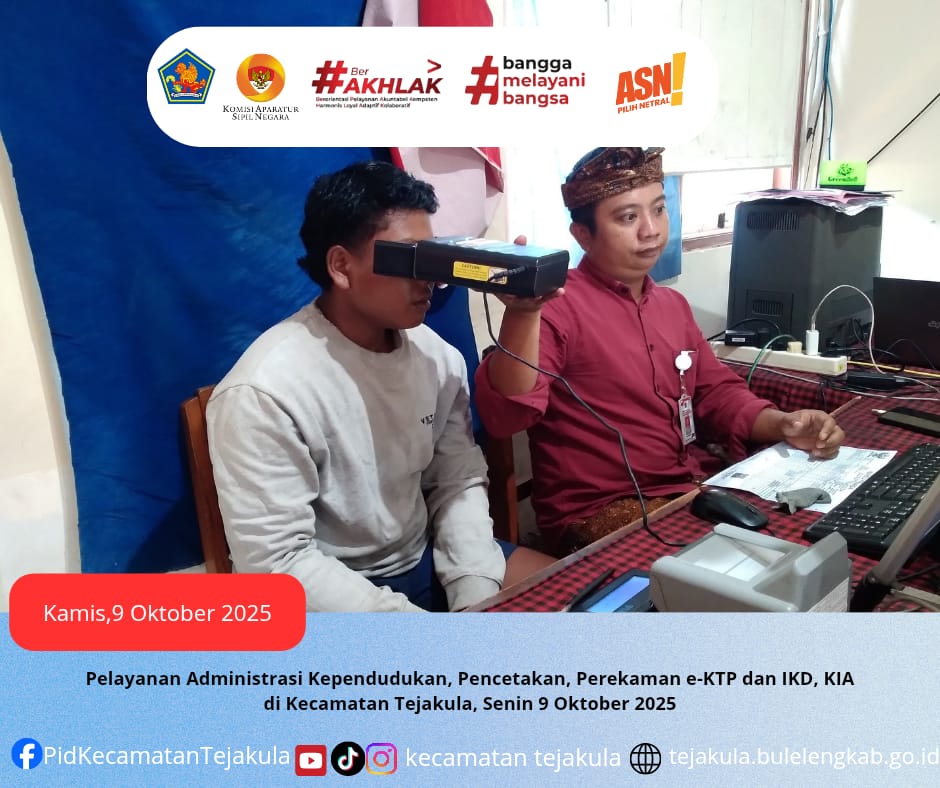 Pelayanan Administrasi Kependudukan, Pencetakan, Perekaman e-KTP dan IKD, KIA di Kecamatan Tejakula, Kamis 9 Oktober 2025.