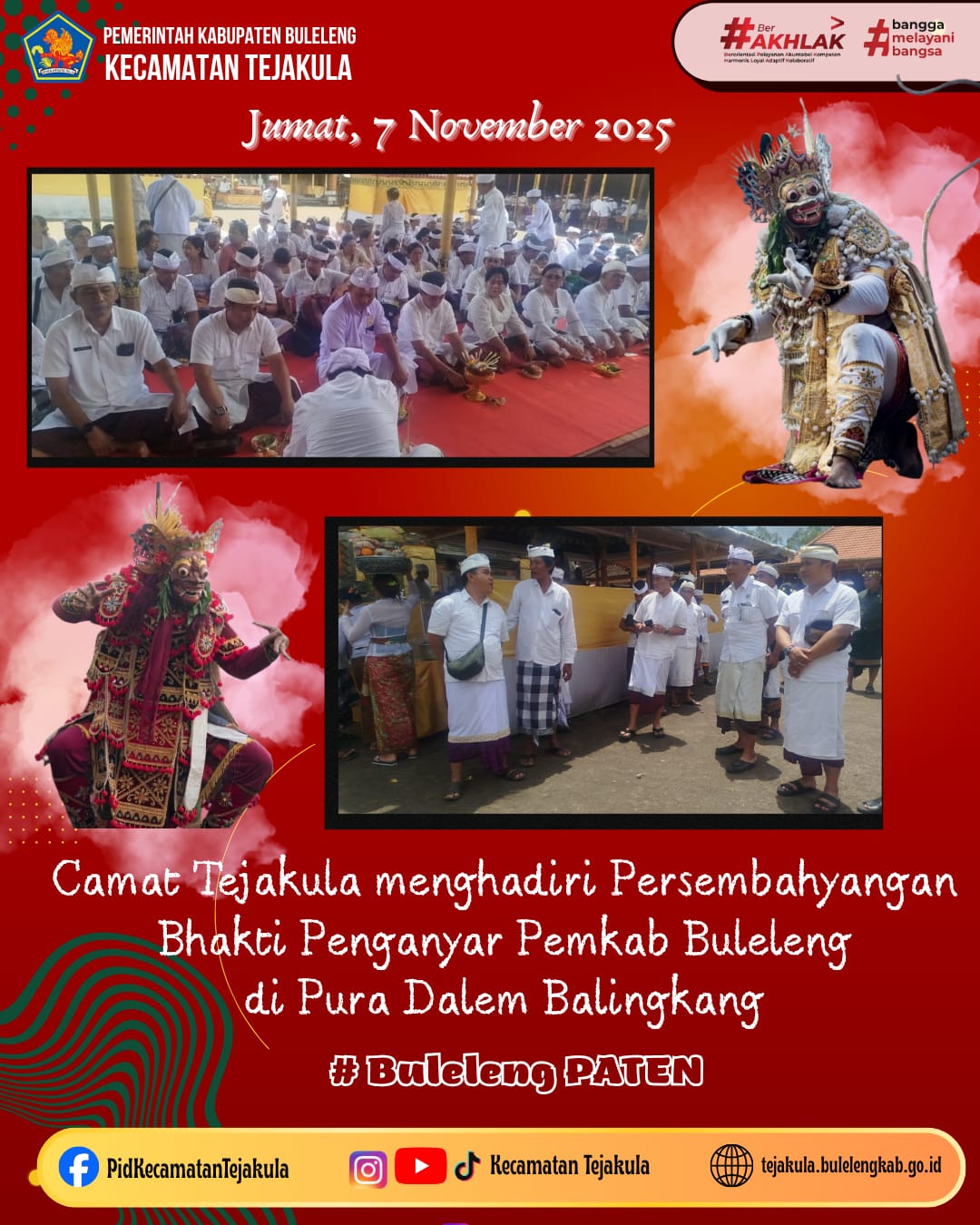 Camat Tejakula Kadek Agus Hartika, ST.,MAP, berserta Sekretaris Camat Tejakula dan staf menghadiri Persembahyangan Bhakti Penganyar Pemkab Buleleng di Pura Dalem Balingkang Desa Adat Pinggan Kecamatan Kintamani Kab. Bangli, Jumat 7 November 2025.