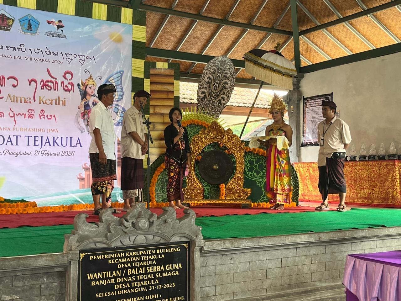 Tejakula, - Mewakili Camat Tejakula Kasi Sosial dan Budaya Kecamatan Tejakula menghadiri Acara Pembukaan Bulan Bahasa Bali VIII Tahun 2026 yang bertempat di Balai Banjar Dinas Tegal Sumaga Desa Tejakula, Sabtu (21/2).