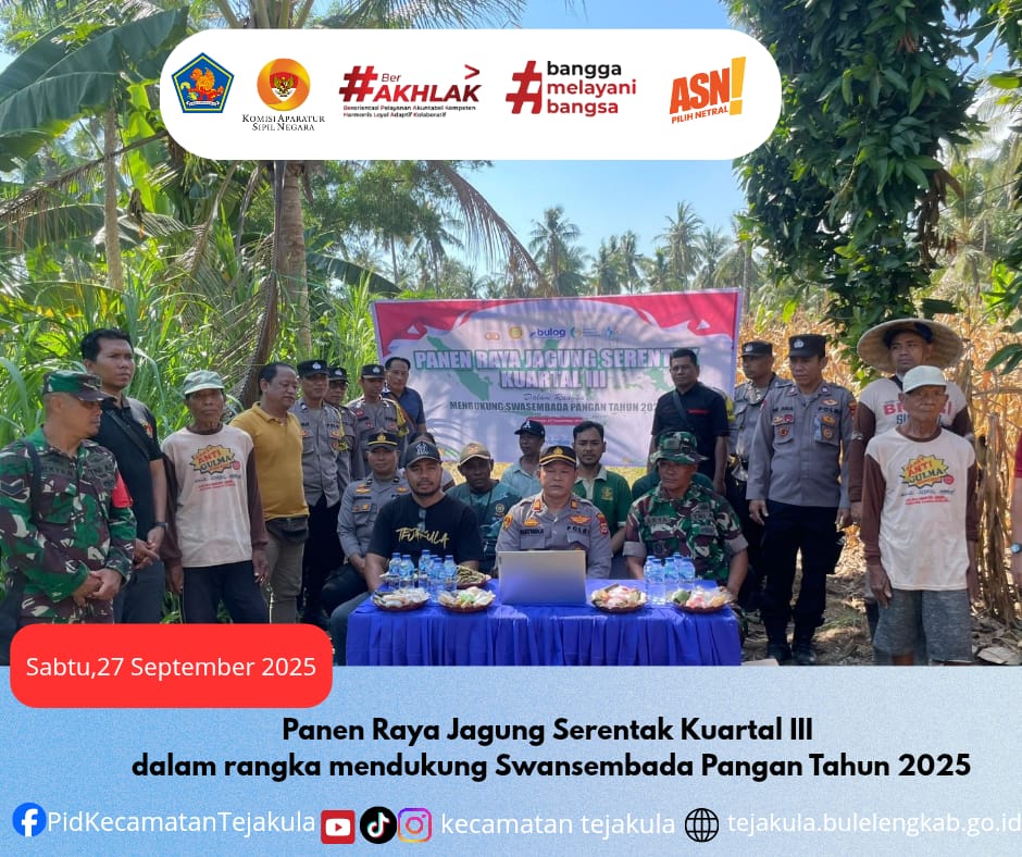 Tejakula, - Sabtu, 27 September 2025, Staf Pol PP Kecamatan Tejakula menghadiri Kegiatan Panen Raya Jagung Serentak Kuartal III dalam bingkai mendukung Swasembada Pangan Tahun 2025, yang di selenggarakan oleh Polsek Tejakula bertempat di PT.BISI Banjar Dinas Tegal Sumaga Desa Tejakula, Kecamatan Tejakula.