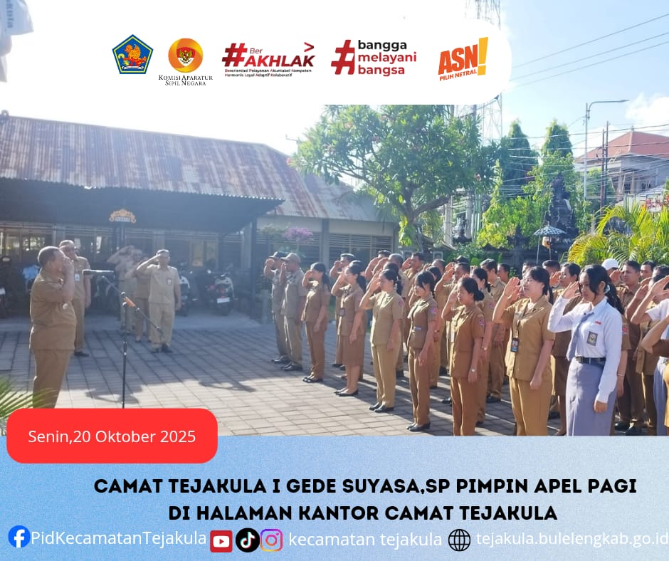Apel Pagi dipimpin langsung oleh Camat Tejakula I Gede Suyasa,SP., dihadiri Sekretaris Camat Tejakula, Pejabat Struktural, Staf ASN dan Non ASN, staf PLKB Kecamatan Tejakula dan Sedahan.