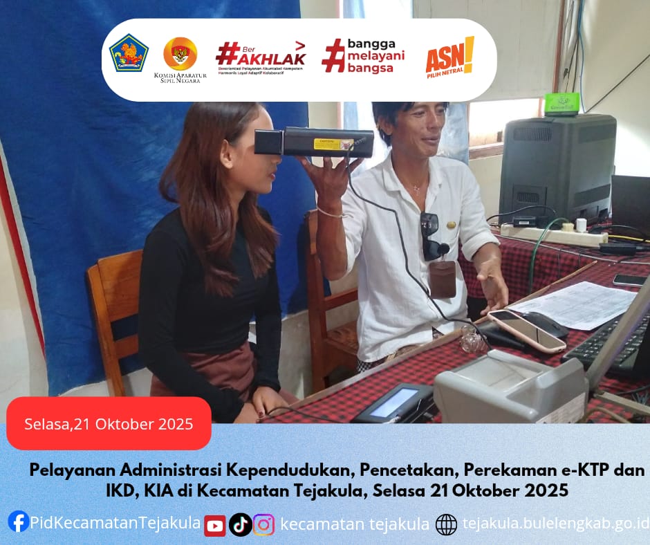Pelayanan Administrasi Kependudukan, Pencetakan, Perekaman e-KTP dan IKD, KIA di Kecamatan Tejakula, Selasa 21 Oktober 2025.